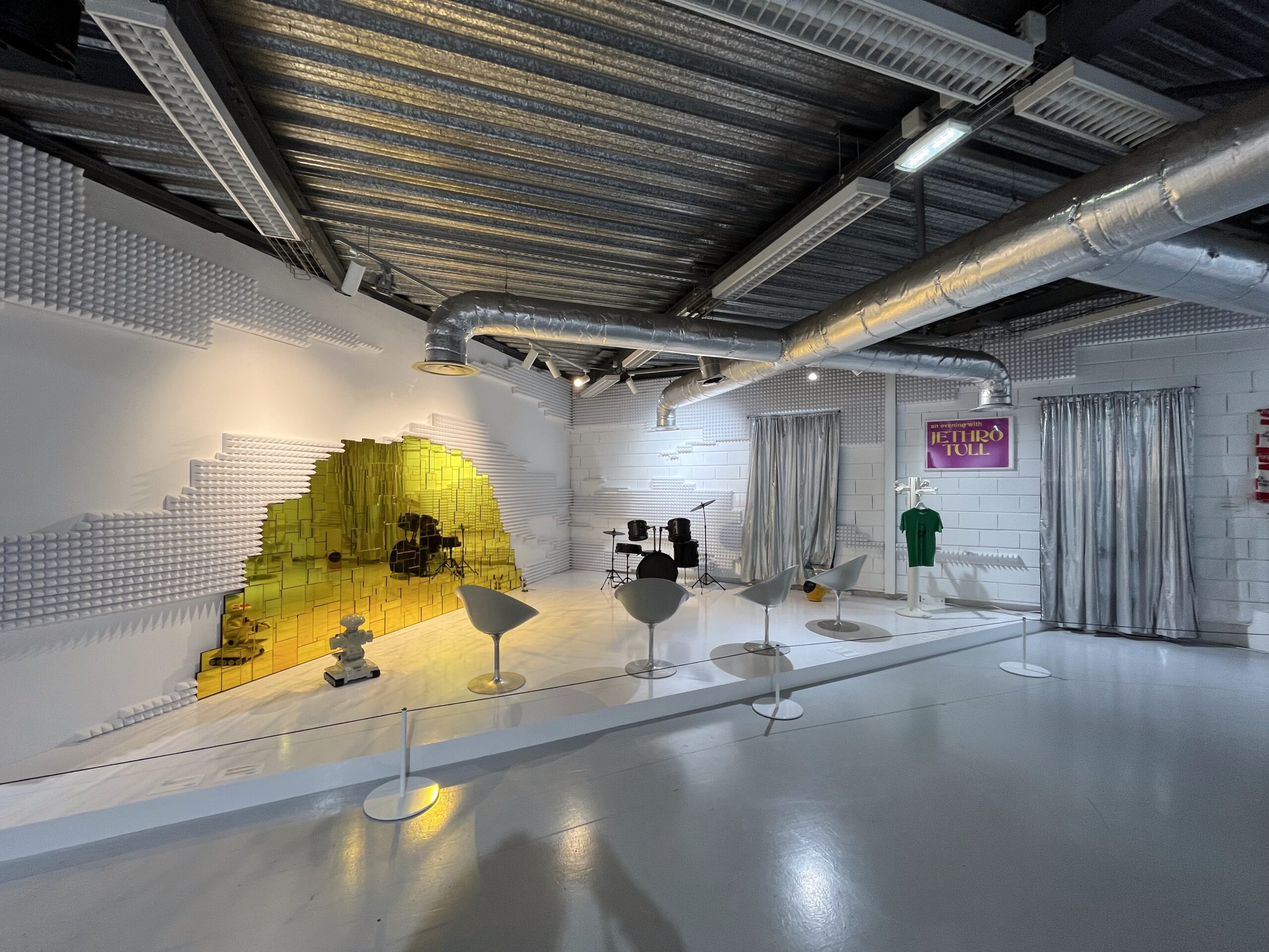 Avec nostalgie mais sans passéisme, l’univers des antiquaires du marché – à partir d’une sélection d’objets d’art historiques & design, HiFi, vêtements, édition, disques ou posters iconiques -, est mis en scène à travers un dispositif scénique rappelant l’âge d’or des décors de plateaux de télévision, allant de références cultes comme Temps X aux années Canal+ ou MTV.