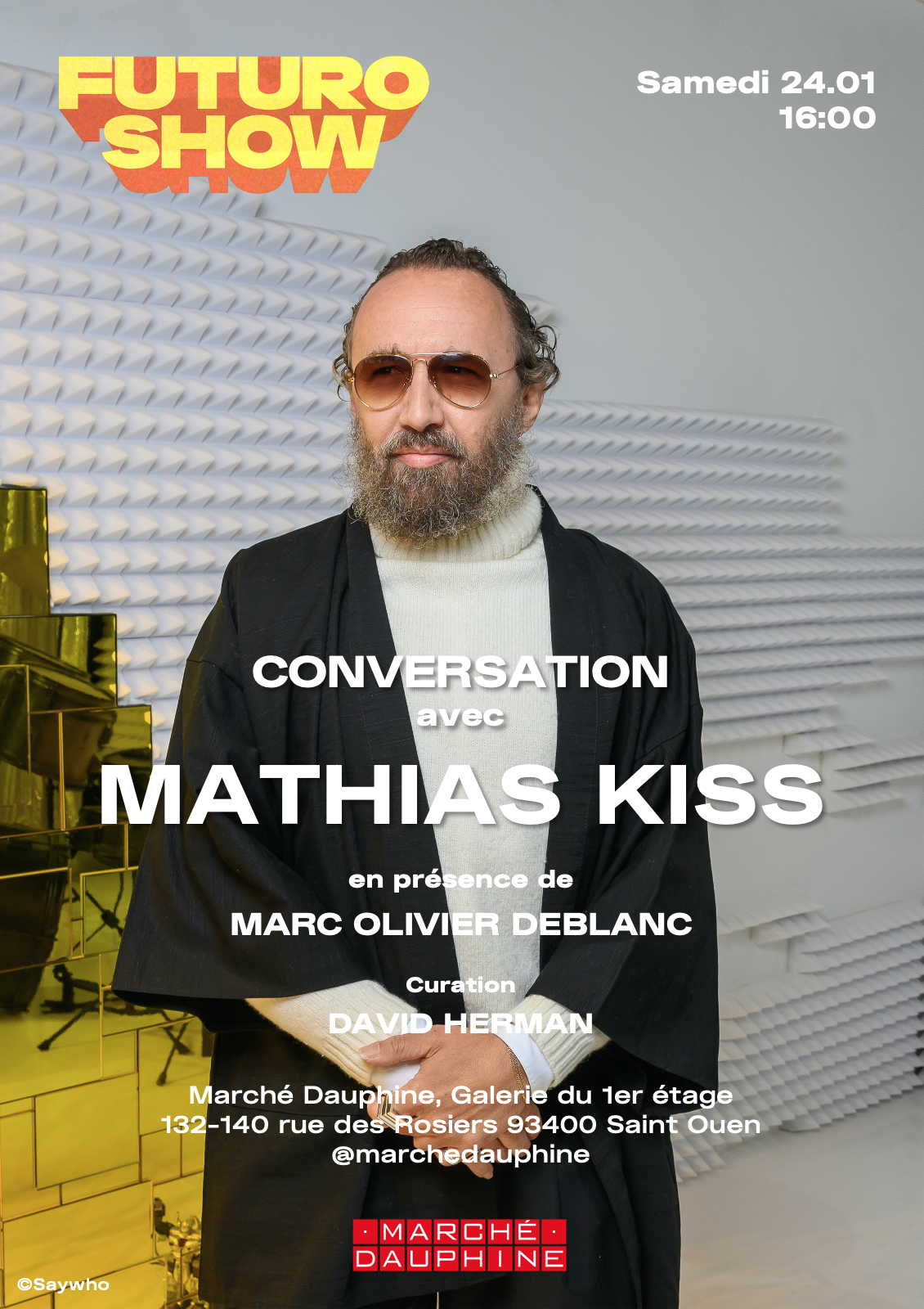 Rencontre avec l’un des artistes piliers du Futuro Show dont la pratique hybride entre peinture, sculpture et installations in-situ, comme l’oeuvre irradiante « Watch you Burn », a investi un large pan de l’exposition. Sera également présent son proche conseiller, Marc-Olivier Deblanc, spécialisé en droit de propriété intellectuelle dans l’industrie de l’Entertainment, qui accompagne l’artiste depuis plus de 10 ans dans l’encadrement de ses réalisations et collaborations, et puis dans la définition de sa démarche artistique.