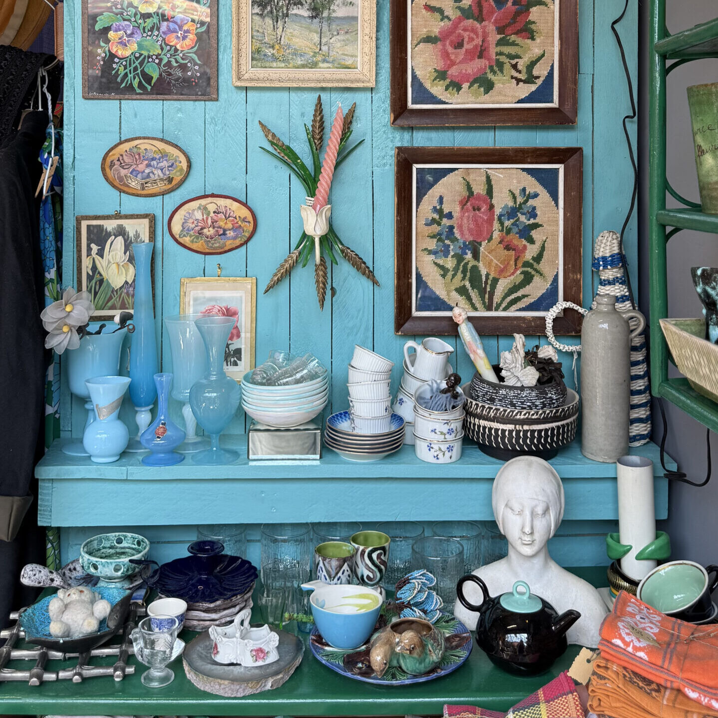 D’autres stands, plus généralistes, réunissent objets de charmes, arts de la table, gravures, meubles et luminaires, à la manière des cabinets de curiosité à la personnalité affirmée.