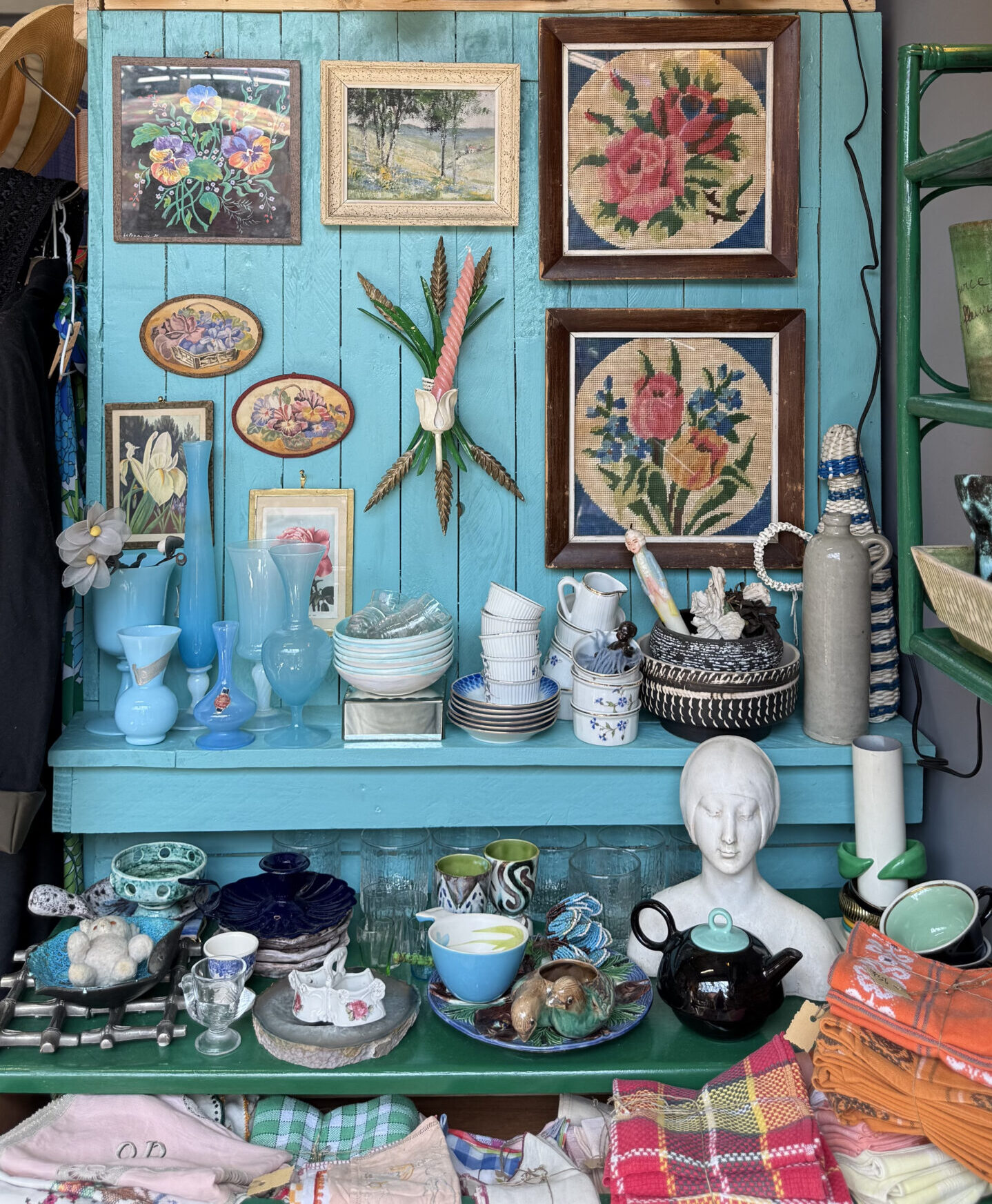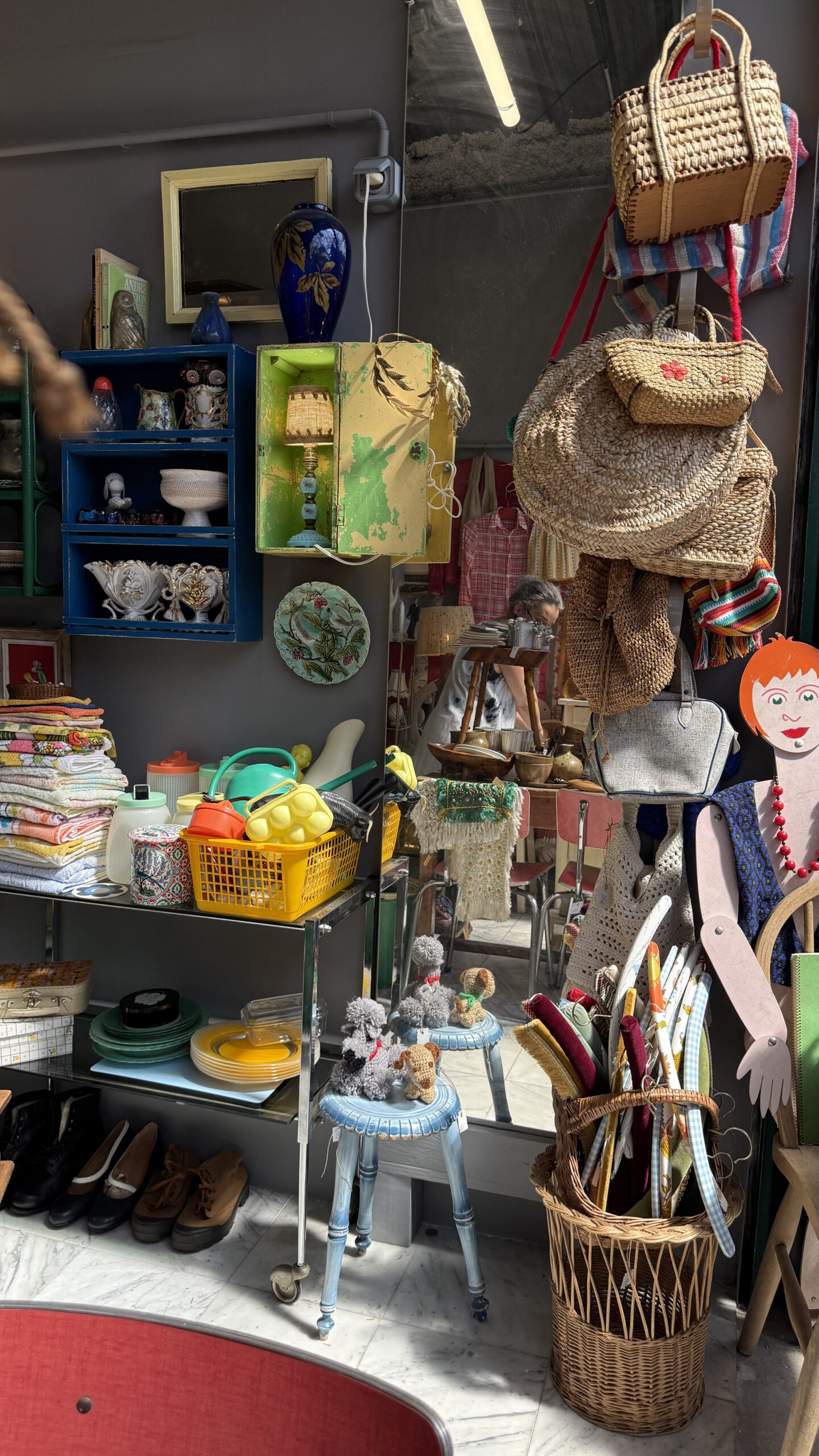 Dans sa boutique, on trouve des objets du quotidien sauvés de l’oubli, des vêtements et accessoires vintage soigneusement choisis, mais aussi des céramiques et des lampes qui créent tout de suite une ambiance.